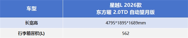 而星越L长宽高为4795*1895*1689mm,并拥有562L的基础后备箱容积,空间可以满足用户基础的用车需求。不过,如果在“坐得下”之外还期待获得更加人性化的体验,星越L可能会有所欠缺。