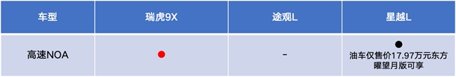 对比之下,途观L仅能提供基础的自适应巡航,变道、超车等操作仍需驾驶员全程参与。星越L虽然在高配车型上提供HNOA高速领航驾驶辅助,但需要接近18万元的预算,性价比可谓大打折扣。换言之,无论是高速NOA的技术成熟度,还是配置诚意,瑞虎9X都是同级油车独一档的存在。